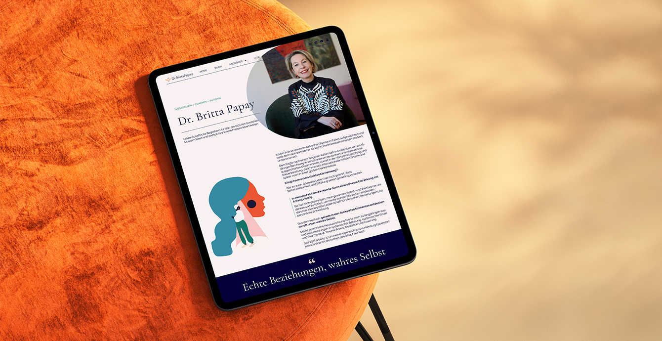 Through in-depth conversations, we identified Dr. Papay’s key values: Growth, Change, Self-Discovery, Courage, and Empathy. Building on these, we developed a tagline: “Echte Beziehungen, wahres Selbst“/ Authentic Connections, True Self”.